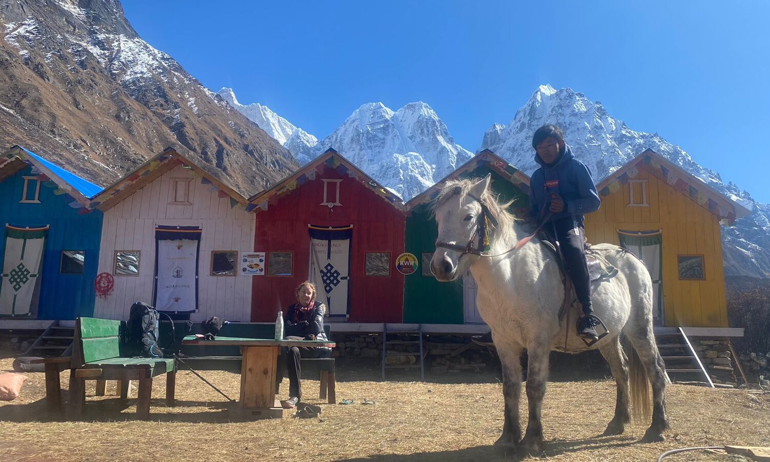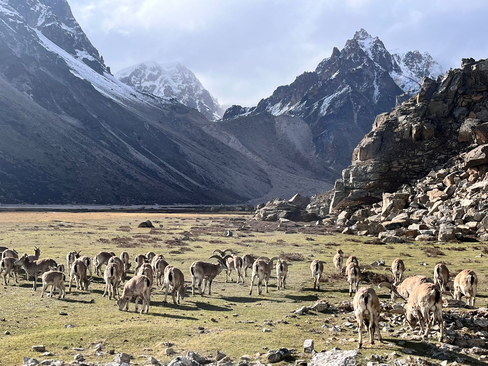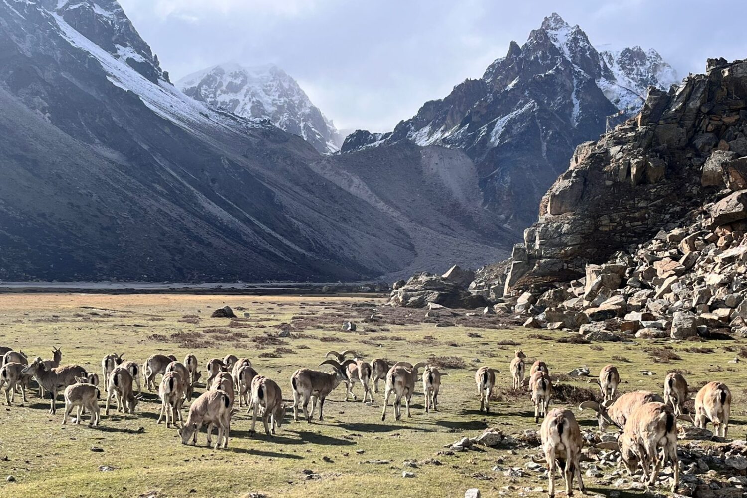 We descend from Lhonak (5,065 meters / 16,617 feet) to Ghunsa (3,475 meters / 11,401 feet), retracing our steps through stunning alpine terrain. The trail passes Ramtang and Kambachen, with continued views of Kanchenjunga’s north face. Though the descent eases the strain on your lungs, sections remain rocky and require careful footing. Wildlife such as blue sheep and signs of snow leopards are often spotted in this remote valley, adding to the experience.